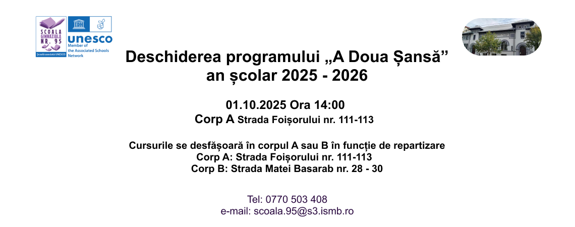 Deschiderea programului „A Doua Șansă”an școlar 2025 – 2026 01.10.2025 Ora 14:00 Corpul A – Str. Foișorului 111 – 113